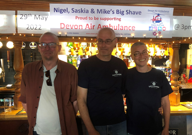 The Bowling Green Exeter have raised around £5,000 for Devon Air Ambulance Trust with a ‘Big Shave'. The licensees of the pub were joined by a local and have shaved their heads to raise money supported by the local community!